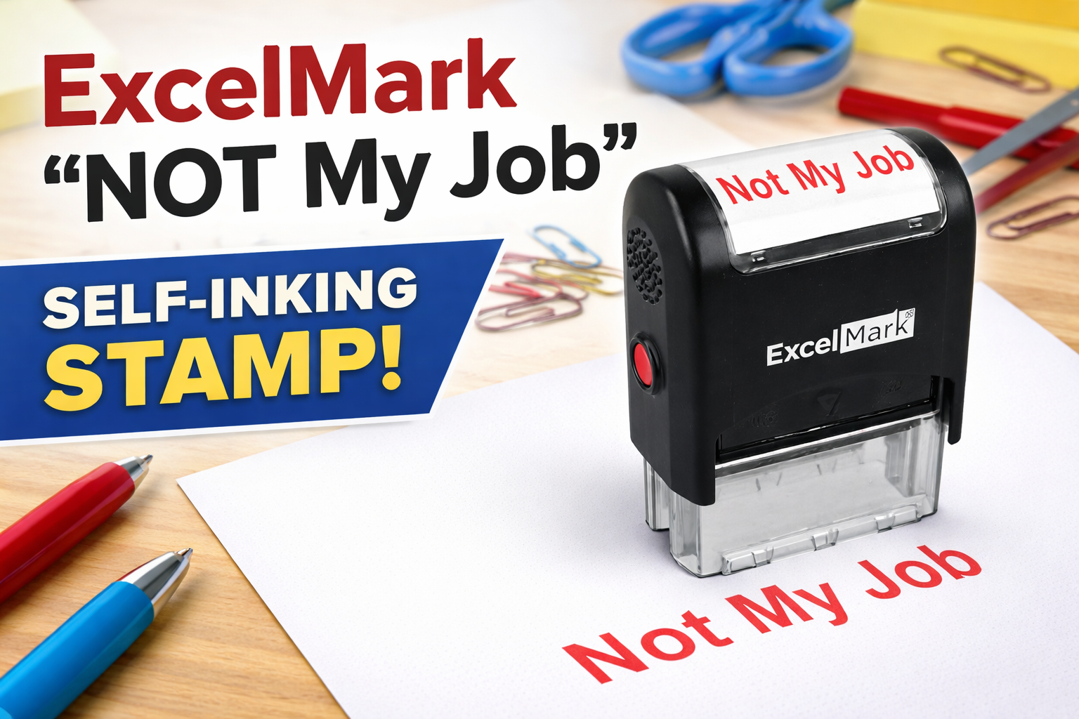 ExcelMark “NOT My Job” Self-Inking Stamp – Red Ink Novelty Office Stamp for Desk Use